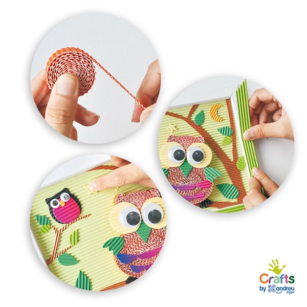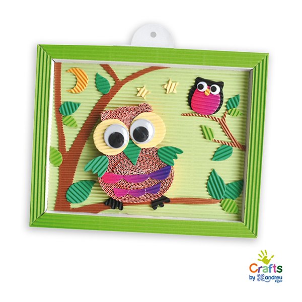 Направете си красива картина от сови. Съдържание на комплекта: велпапе хартия, бял картон, двустранно самозалепващи се стикери, бяло лепило и инструкции.
