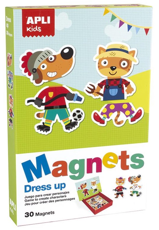 Детска магнитна игра, с която децата ще се забавляват докато преобличат двама приказни герои. Играта съдържа 30 различни елемента с различни костюми и магнитна дъска с размери 28 х 18 см, която служи за подреждане на елементите.