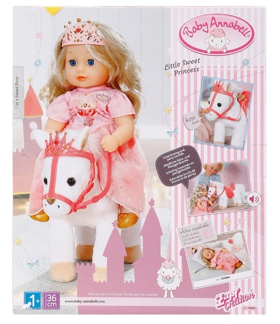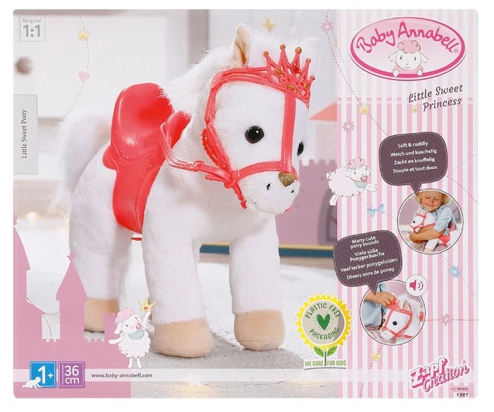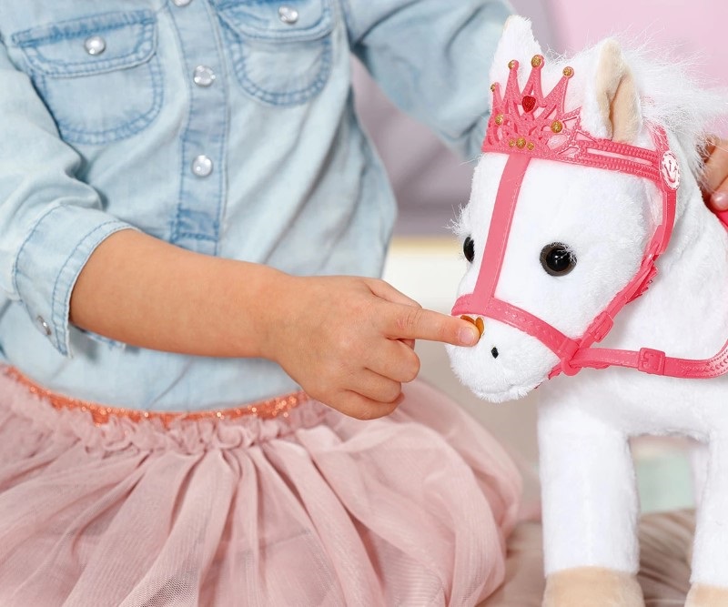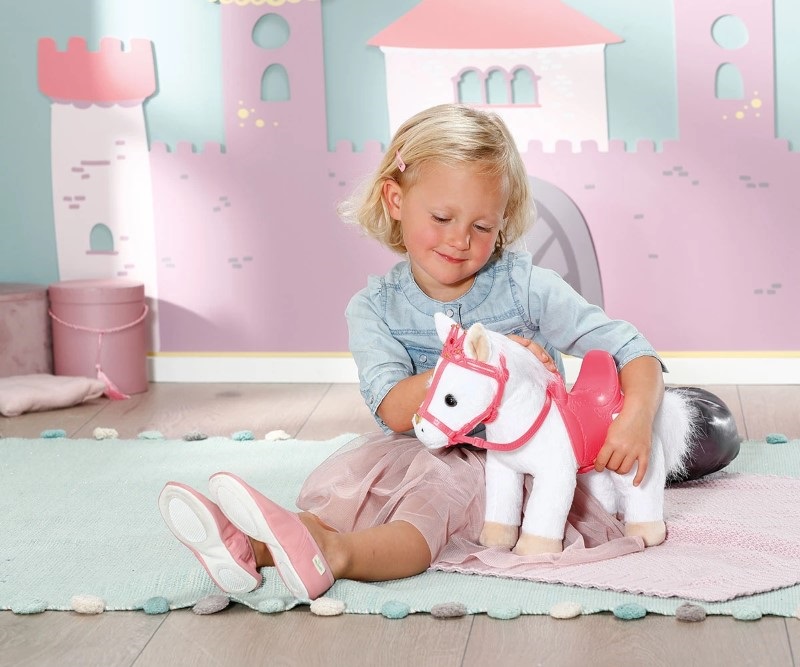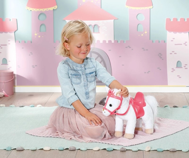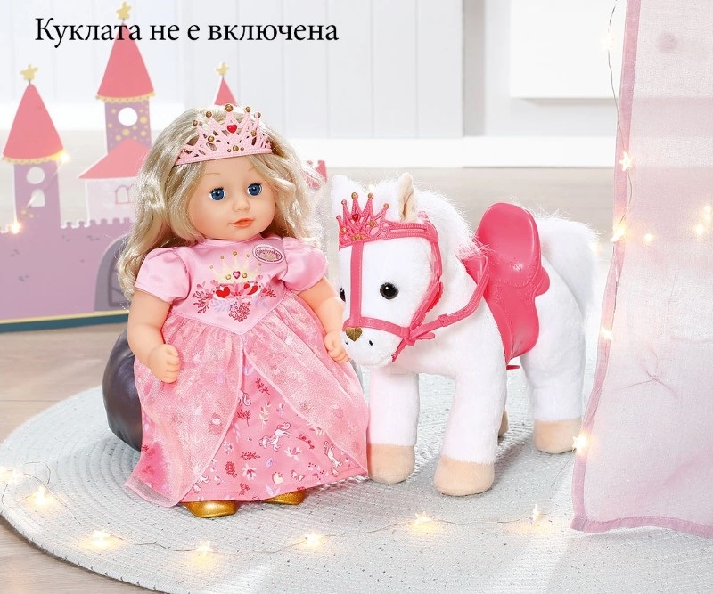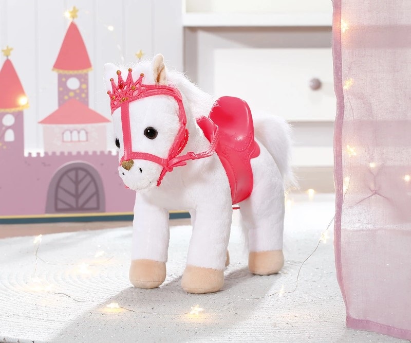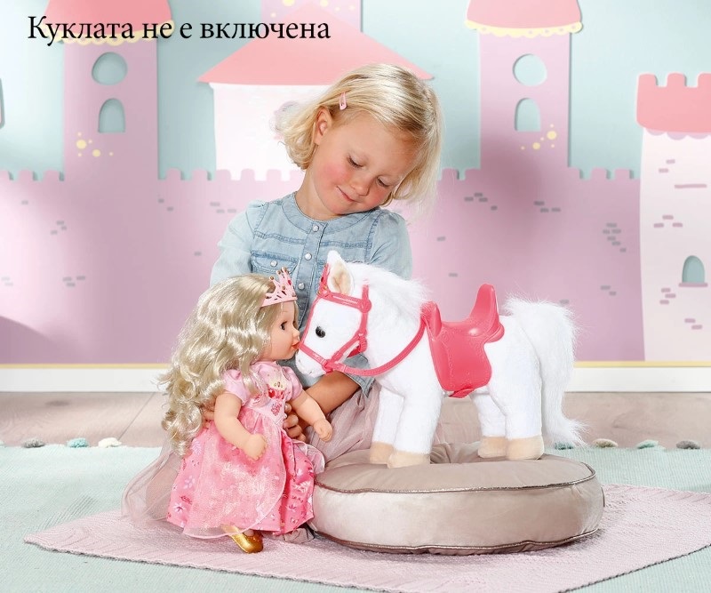 Всяка принцеса има нужда от своето пони, затова ви предлагаме това бяло пухкаво, меко пони за кукла Baby Annabell.