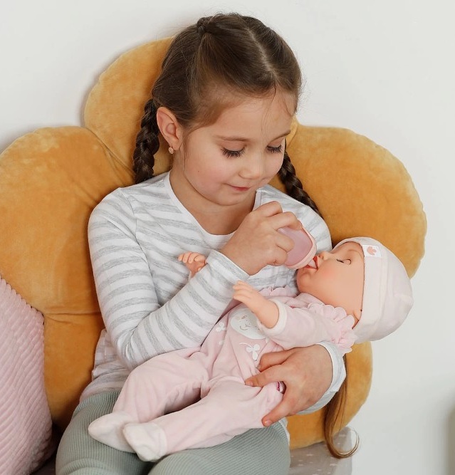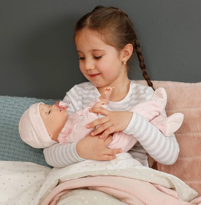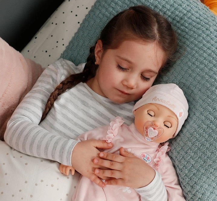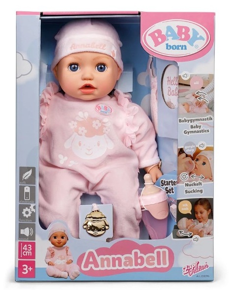 Куклата Анабел реагира със сладки движения и звуци при допир и взаимодействия. Когато я храните с шишето или тя суче биберона, движи устата и очите си, почти като истинско бебе. След хранене има нужда от малка пауза. Ако я потупате нежно по гърба, тя ще се оригне. Когато се умори, може да бъде приспивана внимателно в две посоки. С бебешката гимнастика играта става още по-забавна. Анабел издава сладки бебешки звуци, когато движите ръцете и крачетата ѝ. Ако я погъделичкате по коремчето, тя реагира със смешен кикот, а ако стане „прекалено“, може дори да изпусне малко газове!