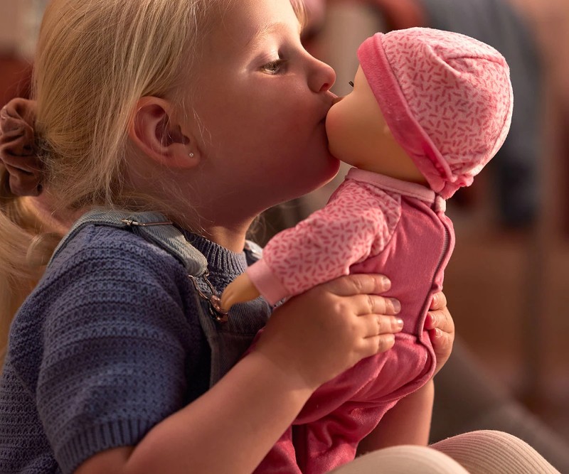 Куклата подпомага развитието на фината моторика и социалните умения, като насърчава децата да създават истории, изпълнени с обич, и да изграждат връзка със своята кукла.