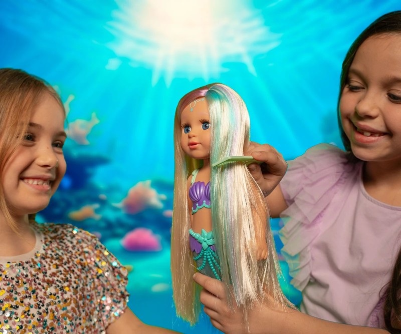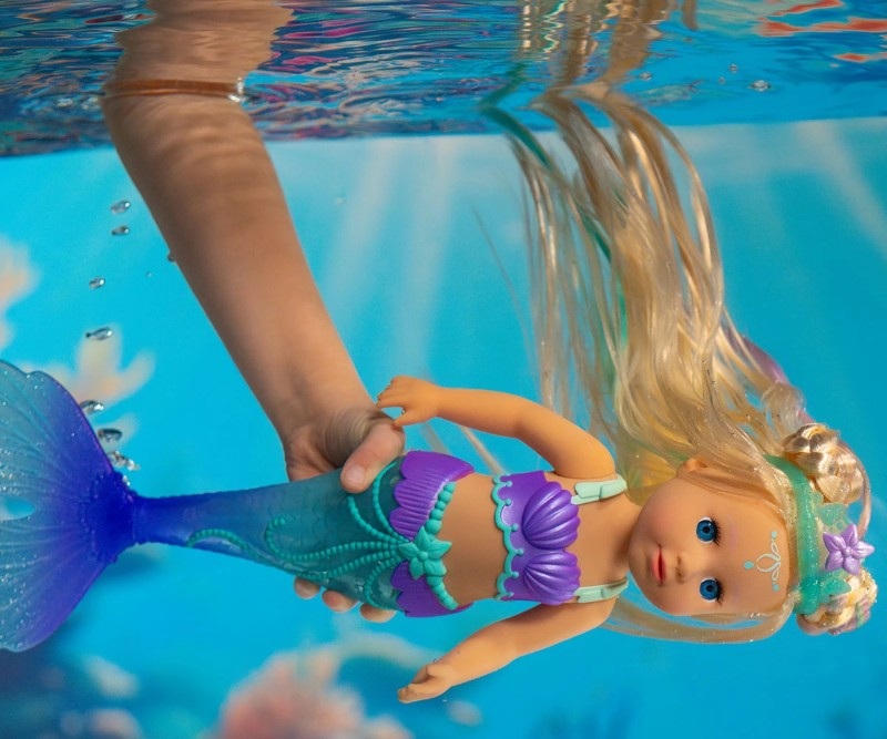 Куклата е с магическа опашка – ярка и пъстра движеща се във водата като истинска русалка. Дългата и руса коса е идеална за сресване и за прически.