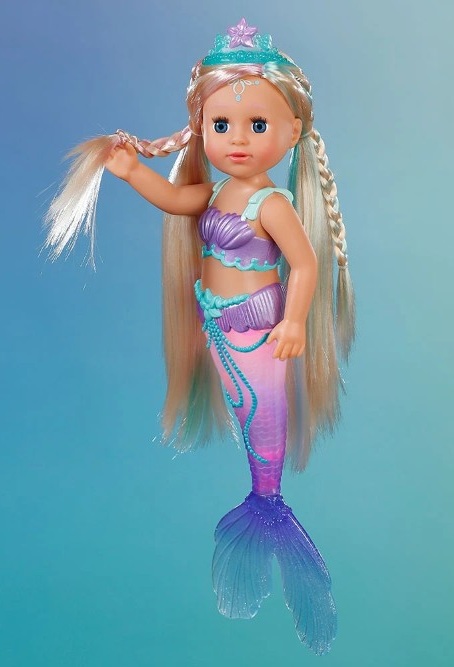 Тази красива кукла русалка, ще ви отведе в нейния вълшебен подводен свят, пълен с приключения. Очарователната кукла-русалка съчетава магията на подводните създания с интерактивно забавление, което ще зарадва всяко дете. Сега тази приказна русалка е готова да пренесе чара на океана във вашия дом! Превърнете банята в истинско подводно приключение и оставете въображението да се понесе с BABY born Русалка с дълга коса!