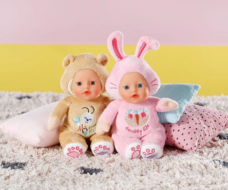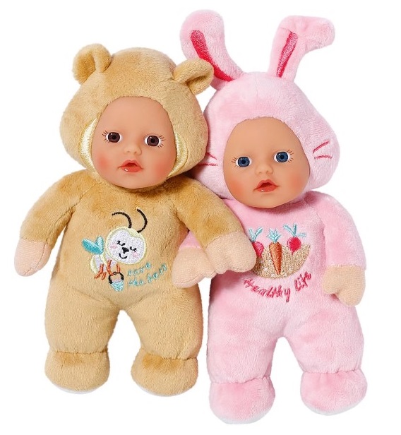 Меки кукли, облечени в костюмчета на зайче или мече и са подходящи за игри и гушкане от най-малките бебета. Те са с височина само 18 см са идеални за хващане от ръчичките на малчуганите.