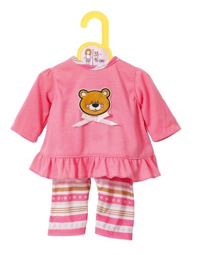 Мека розова пижамка с апликация на мече от серията Dolly Moda, подходящ за кукли Baby Born и Annabell с ръст 43 см.