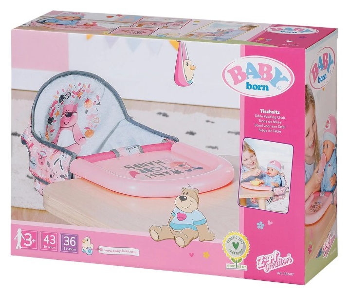 Куклата на Baby Born вече ще има свое място на масата за хранене с това удобно и практично столче с табла!