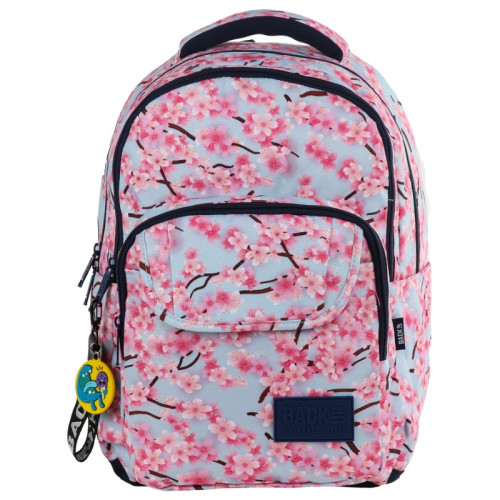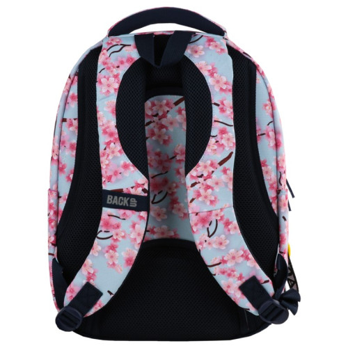 Раницата е изработена от водоустойчив и издръжлив плат и разполага с 2 големи отделения, 2 предни джоба и 2 странични джоба за бутилки. В първото отделение има разделител за лаптоп или таблет, а второто е подходящо за учебници и тетрадки с формат А4 и има малък джоб с цип. Раницата разполага и с удобен органайзер за съхраняване на дребни вещи. Гърбът на раницата е ергономично оформен и покрит с дишащ материал. Презрамките са широки, регулируеми, дъното е подсилено и има дръжка, удобна за носене в ръка. Раницата е и със светло-отразителни ленти, които осигуряват допълнителна безопасност на пътя.