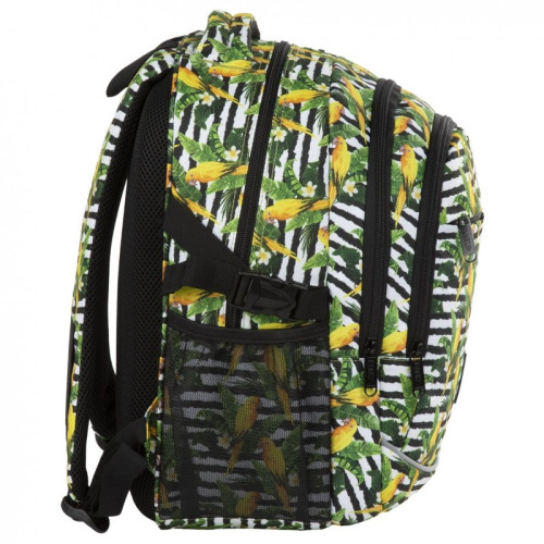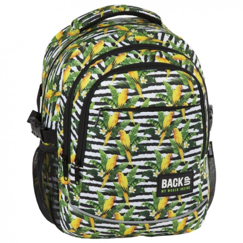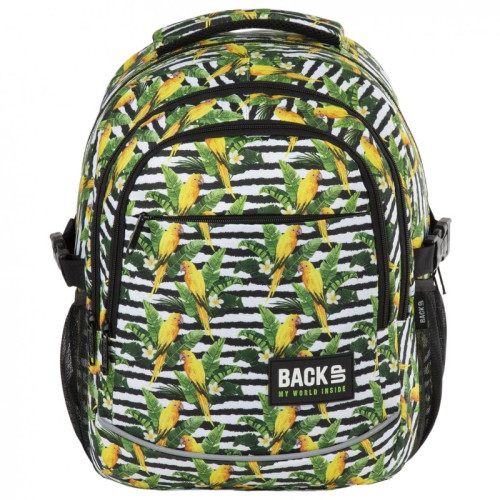 BackUp Ученическа раница с 3 отделения, G68, Папагали
