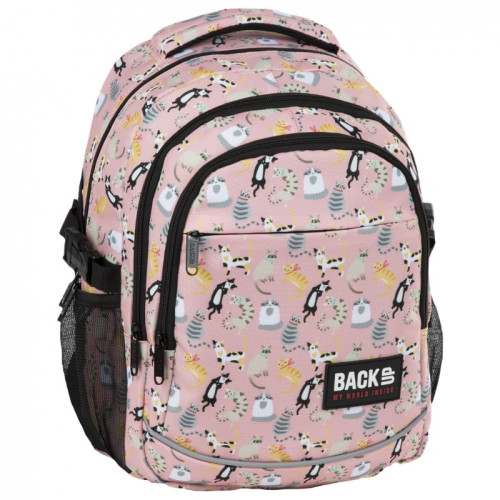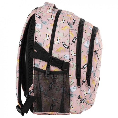 Просторна и функционална ученическа раница, която ще се хареса на всеки. Раницата се характеризира с внимателна изработка и страхотен модел с интересна комбинация от цветове. Материалът, от които е изработена раницата е водоустойчив и издръжлив. Раницата е просторна и разполага с 2 големи отделения и 1 по-малко. В едното отделение има голям разделител за А4 и таблет; във второто отделение също могат да се поставят учебници и тетрадки, третото отделение е предназначено за по-дребни аксесоари. Има и преден джоб с цип, два странични мрежести джоба. Гърбът на раницата е твърд и покрит с дишаща материя. Презрамките са широки, меки и подплатени. Дъното на раницата е подсилено с пяна. В горната част на раницата има мека подплатена дръжка за носене. Раницата има и странични каишки, които позволяват да се регулира обема.
