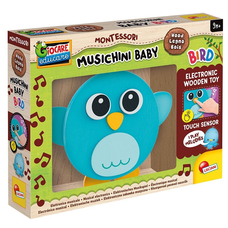 Изработена е от дърво и радва малчуганите с наситените си цветове, които привличат окото на мъничето и създават радостно настроение. Пиленцето има вграден сензор за докосване, благодарение на който детето може да пуска весели мелодии. Тези радостни звуци правят времето по-приятно, развиват слуха и насърчават взаимодействието. Мелодиите са внимателно подбрани, за да бъдат приятни и развиващи.