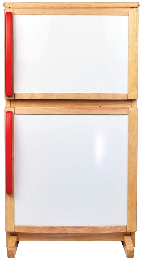 Детски дървен хладилник, в който малките готвачи ще могат да съхранят цялата си храна за игра свежа. Хладилникът разполага с две отделения – хладилно и фризер, в които има рафтове за съхранение и лесно отваряща с врата, която разполага с магнит, който ви гарантира, че вратата винаги ще е добре затворена. Чудесен начин да научим децата за нещата, които слагаме в хладилника, и защо. Насърчава творческата и въображаемата игра. Може да се комбинира и с други дървени уреди и кухни от Tidlo. Изисква се сглобяване от възрастен. Изработена е от висококачествени материали, съответстващи на действащите европейски стандарти за безопасност.