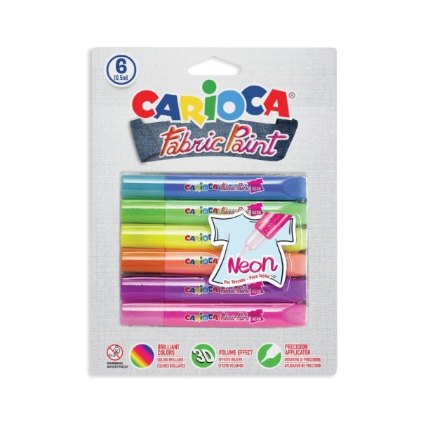 Carioca Боички за текстил Neon, 6 цвята