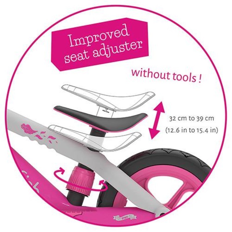 BMXie е страхотно колело за баланс с истинска велосипедна рамка, оформена по модел и дизайн на BMX, регулируема седалка, без инструменти и с интегрирана подложка за крака и спирачка. Колелото е с безвъздушни гуми Rubber Skin, които допринасят за страхотното сцепление на пътя.