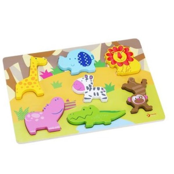 Пъзел с който вашите деца могат да се запознаят с различните животни. Със седемте фигурки, децата могат да играят и самостоятелно на различни игри. Играта с пъзела развива фината моторика, концентрацията и логическото мислене на децата. Изработен е от здрава и качествена дървесина.