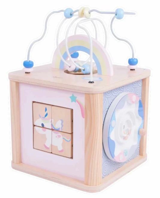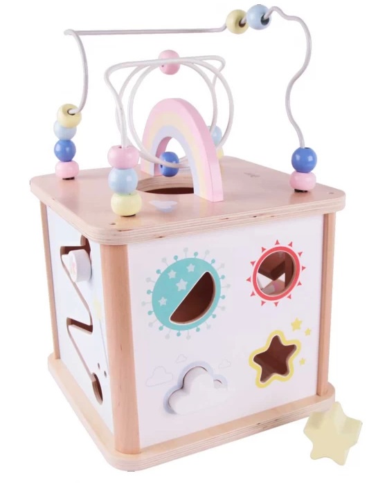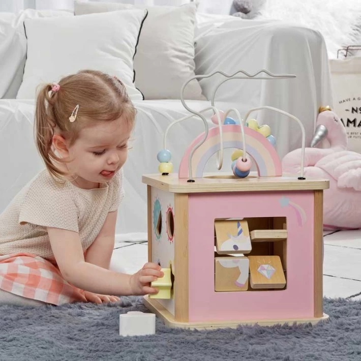 Дървен куб с активни занимания, розов
