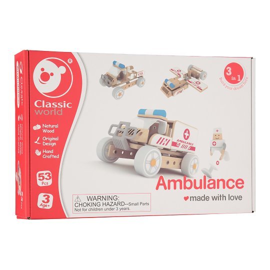 Classic World Дървен конструктор Линейка, 3 в 1