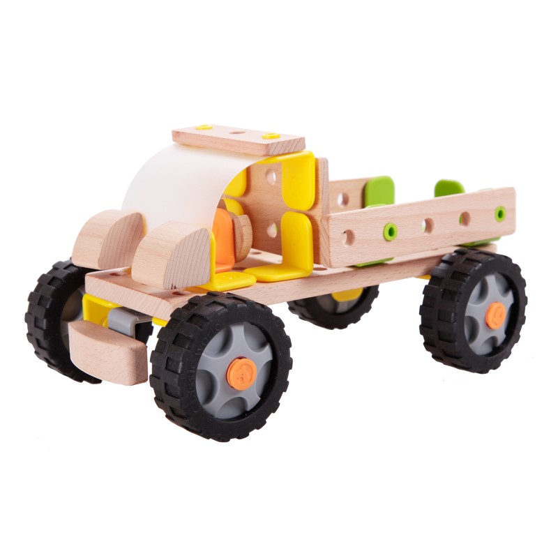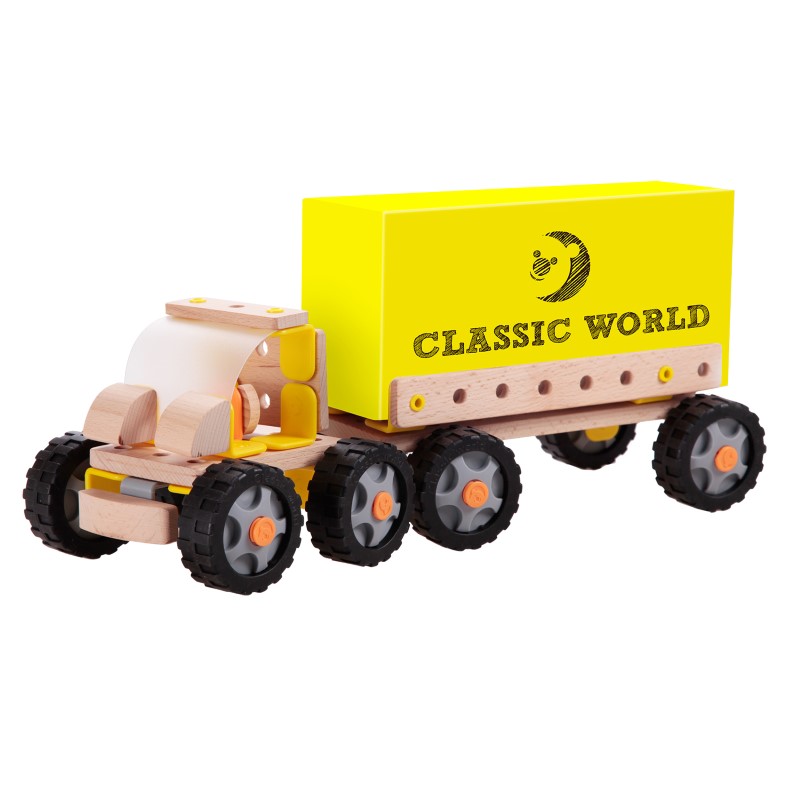 Детски конструктор съдържащ 55 дървени и пластмасови елемента, с които децата могат да си конструират камион, контейнер или сами да си измислят друг интересен модел. Този тип конструктори са истинско забавление и удоволствие за малките любители на този вид играчки.