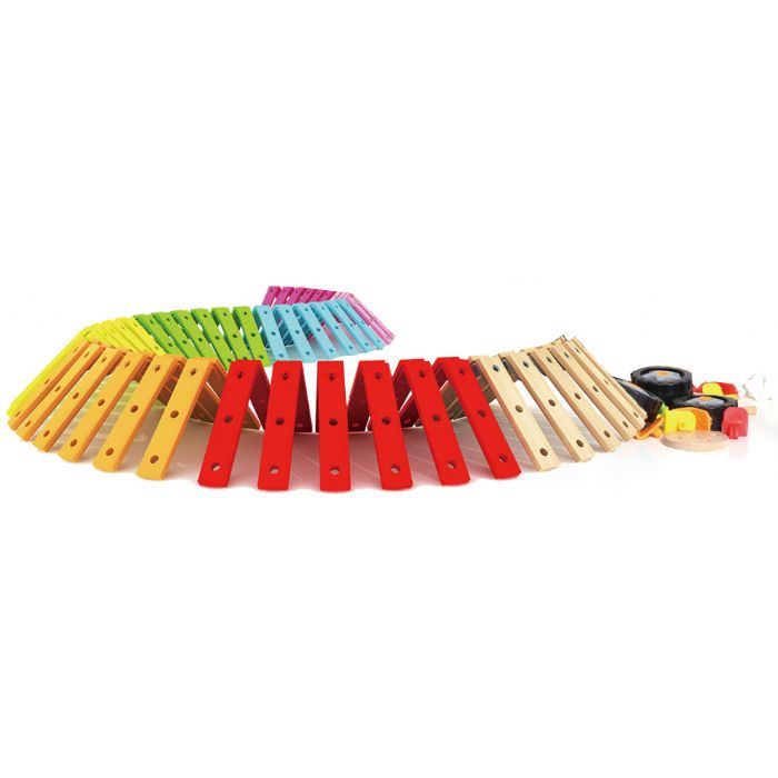 Дървен конструктор с цветни елементи
