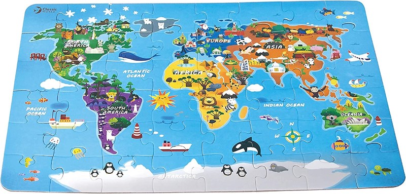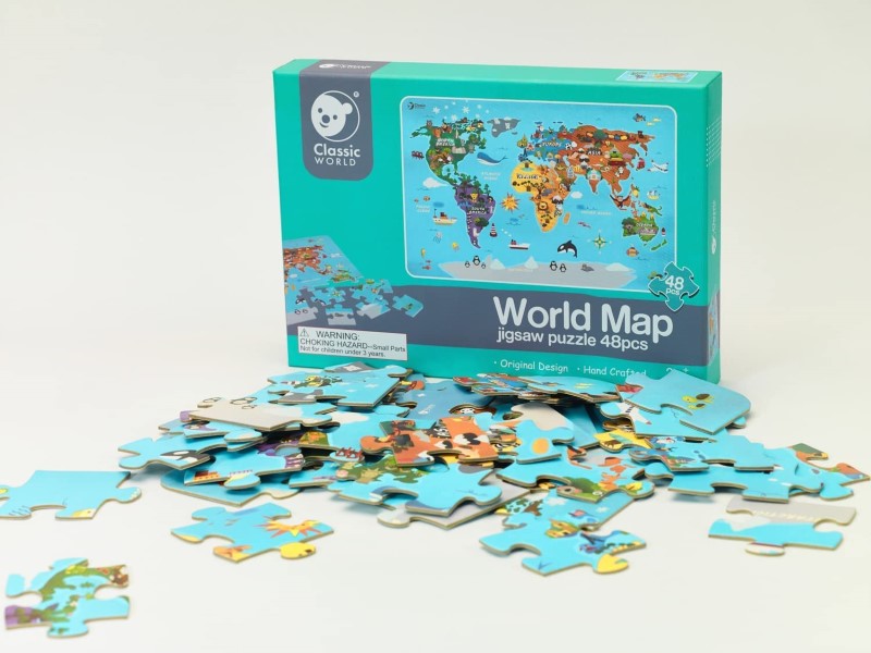 Classic World Дървен пъзел Карта на света, 48 елемента