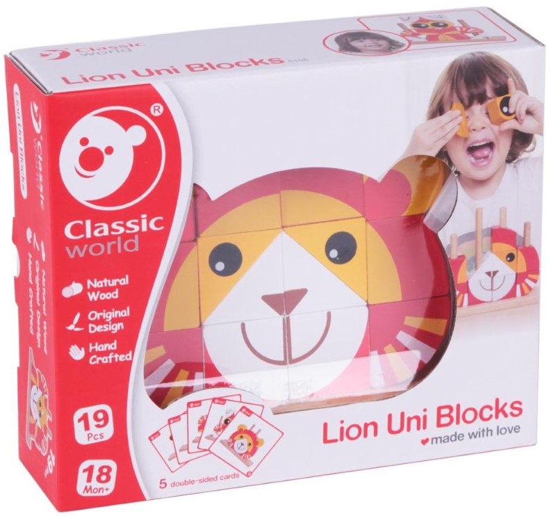 Classic World Дървен пъзел с цветни блокчета, Лъвче