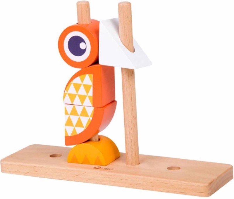 Комплектът съдържа 24 елемента – поставка за подреждане, цветни дървени блокчета и няколко карти с примери.