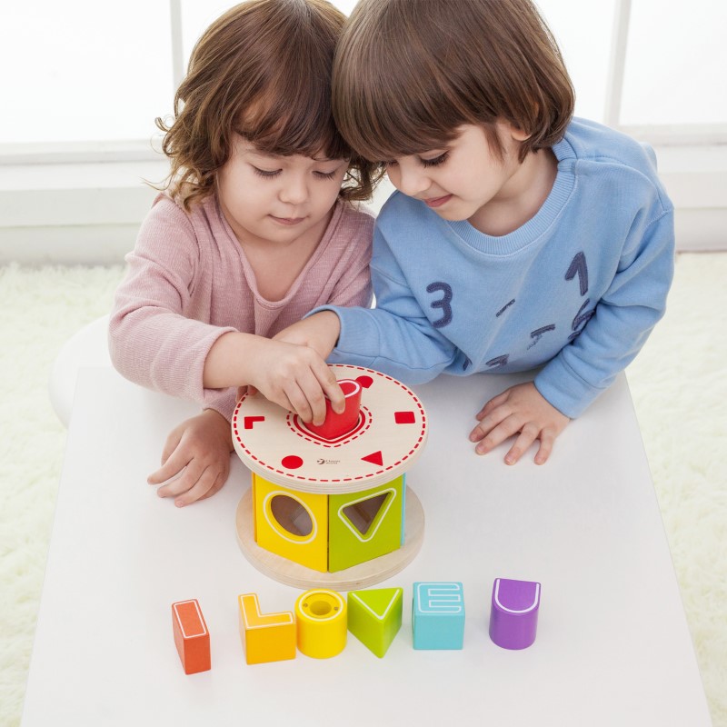Задачата на децата е да открият правилната форма съответстваща на цвета и формата и да я поставят или промушат през отвора. От горната страна на кубчето има подвижен капак, през който могат да се вадят формите. Чрез сортирането на различните форми, детето ви ще развива своята съобразителност и координация.