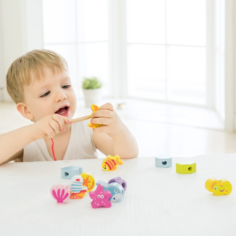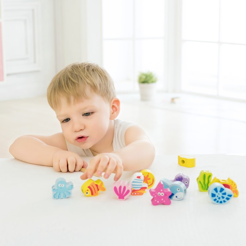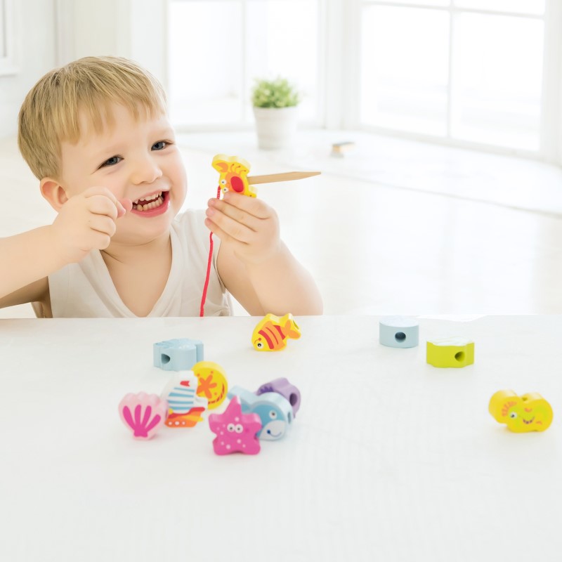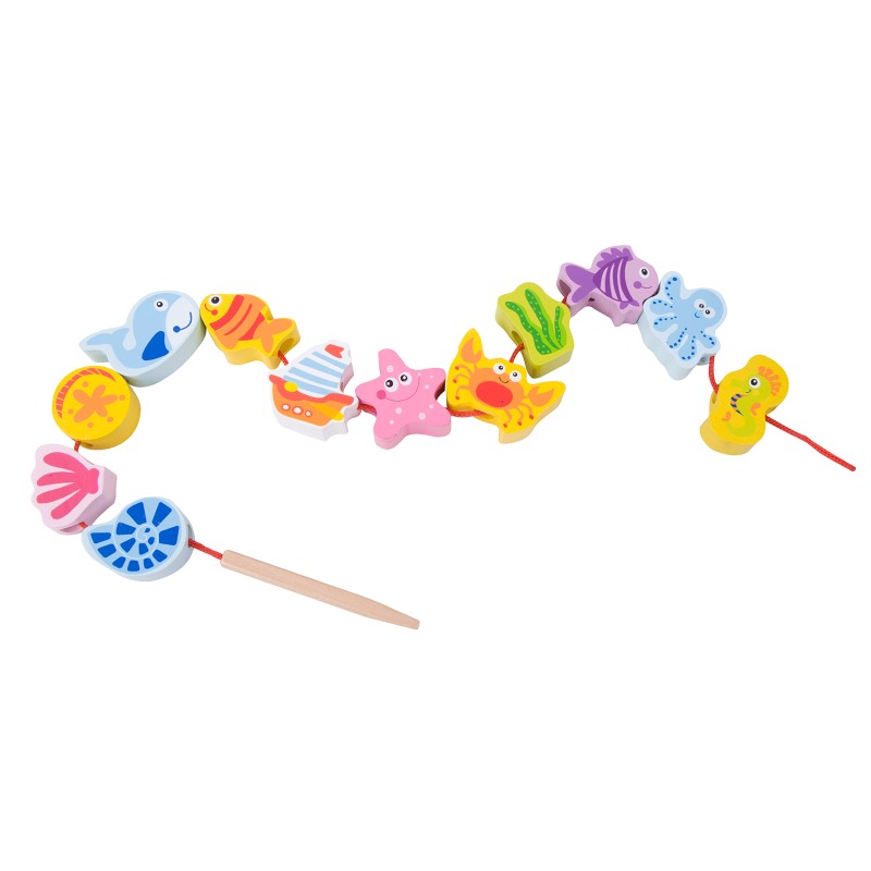 Забавен детски комплект съдържащ 13 различни фигури с животните от морето изработени от висококачествена дървесина и лесни за хващане от малките ръчички. Те са идеални за игра, когато сте на път, подари малките си и компактни размери. Комплектът съдържа и въженце, на което могат да се нанижат едно по едно.