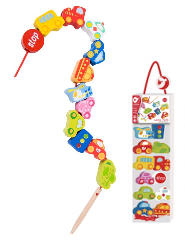 Забавен детски комплект съдържащ различни фигури с цветни превозни средства изработени от висококачествена дървесина и лесни за хващане от малките ръчички. Те са идеални за игра, когато сте на път, подари малките си и компактни размери. Комплектът съдържа и въженце, на което могат да се нанижат едно по едно парчетата. Всяко дете ще организира и ще разбере повече за пътния трафик с помощта на цветовете, докато се научи. Тази игра насърчава сръчността и фините двигателни умения на децата.
