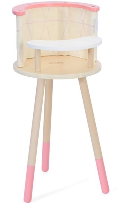 Класическо дървено розово столче за хранене на кукли, което е отлично решение за малки деца, които имитират поведението на възрастните. Столчето ще позволи на детето ви да се грижи за любимата си кукла или плюшено мече и заедно ще се хранят на масата.
