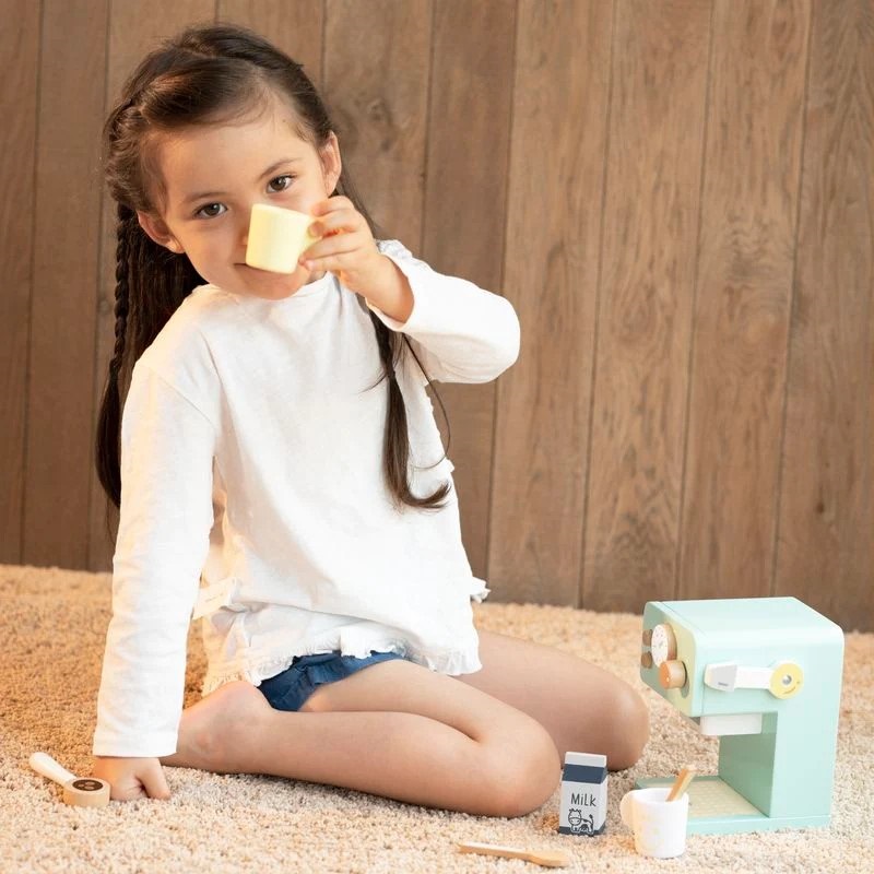 В комплекта са включени и аксесоари като две чаши, мляко, лъжици и кафе на зърна.