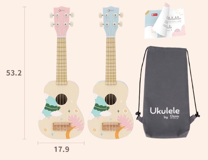 * Дървена китара Ukulele от реномираната марка Classic World за млади музиканти
