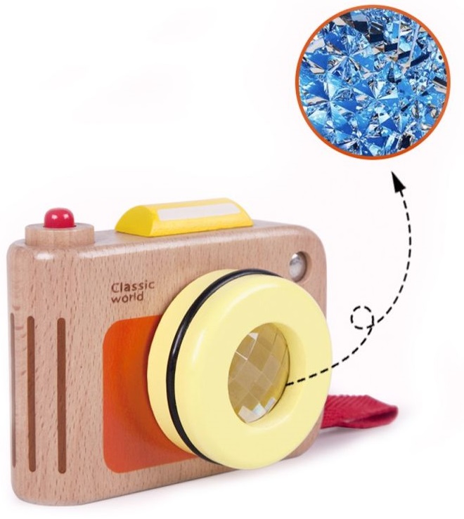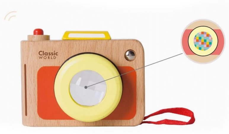 Уловете този перфектен момент с фотоапарата на Classic World. Играчката има въртящ се обектив с икони на 3 режима, червен бутон на снимане и светкавица. Малкият фотограф може да търси идеалния кадър, благодарение на който ще се събуди любопитството му и ще се развият креативността и въображението му.