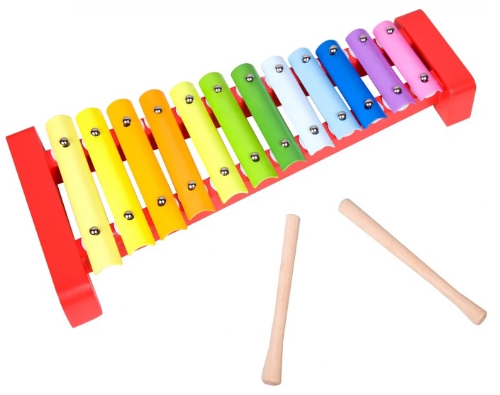 Дървен ксилофон за деца с 12 тоналности. Идеален за първи музикален инструмент за детето ви. Ксилофон, изработен от дърво, с клавиши в цветовете на дъгата. Толкова е симпатичен, че Вашето дете ще остане запленено от него и звуците, които издава. Създаден за малки ръчички и велики мелодии.