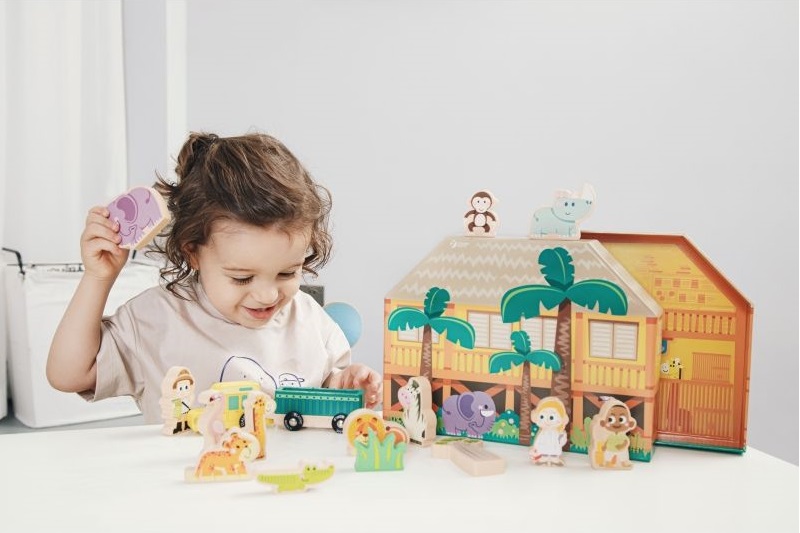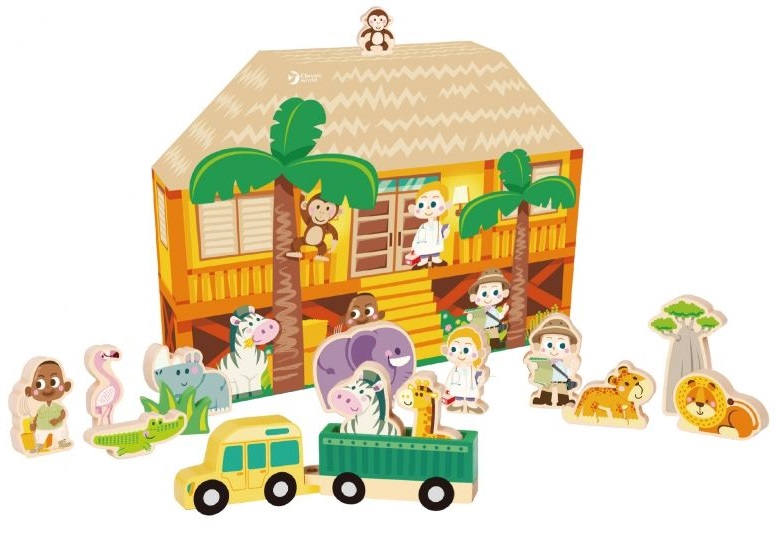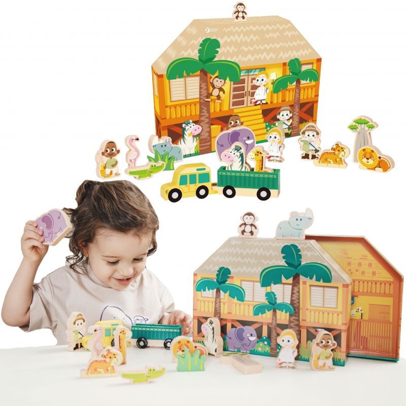 Комплектът включва 16 дървени цветни фигури на диви животни, които ще помогнат на вашето дете да научи за света и животните, живеещи в дивата природа. Децата могат да използват въображението си, за да разкажат собствените си истории за живота на сафарито. Страхотен продукт за групова игра.