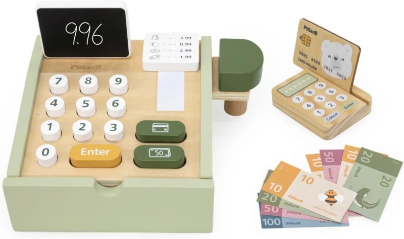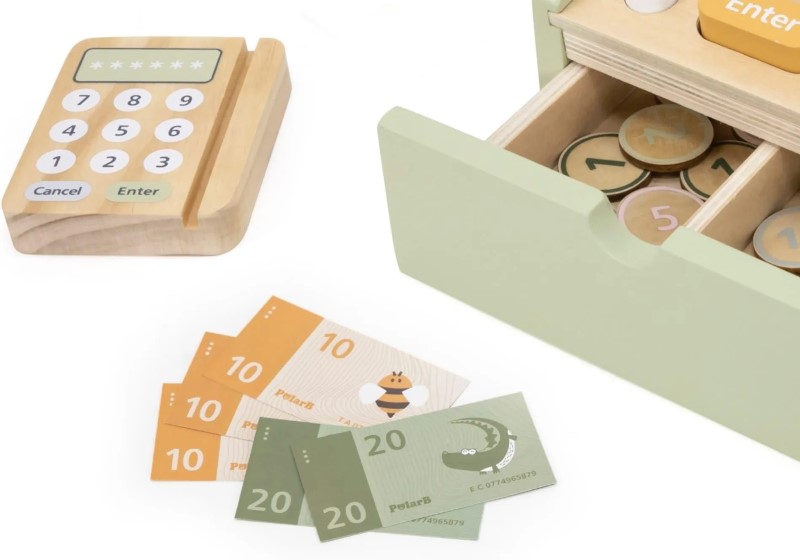 Детски дървен касов апарат с баркод четец PolarB
