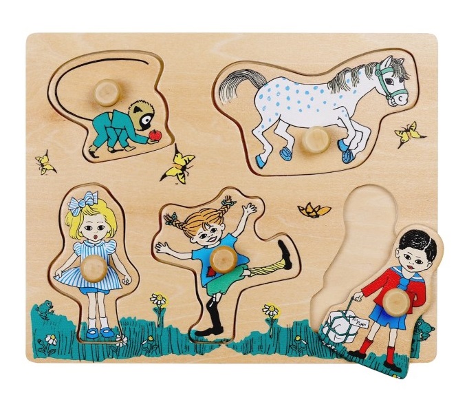 Дървен пъзел с дръжки Пипи и приятели, 5 части – Pippi