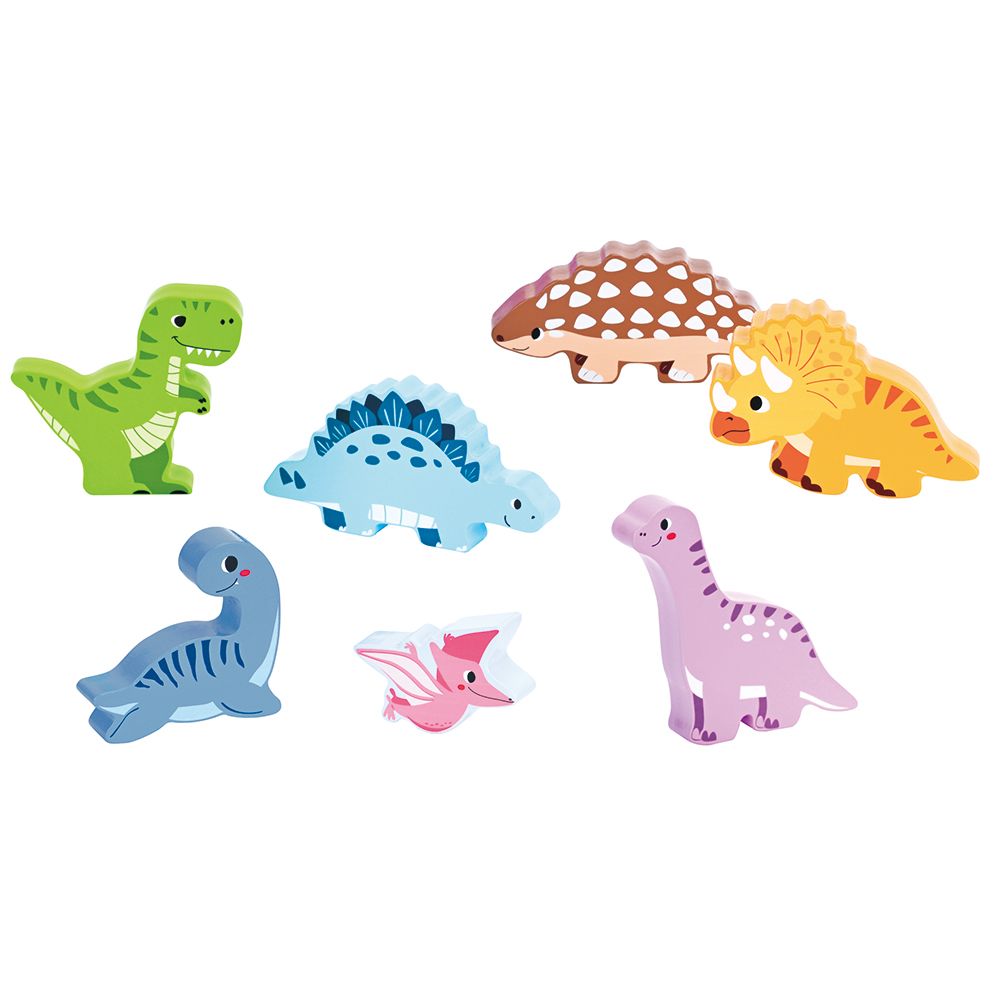 Lelin Toys Дървен пъзел с фигури на динозаври