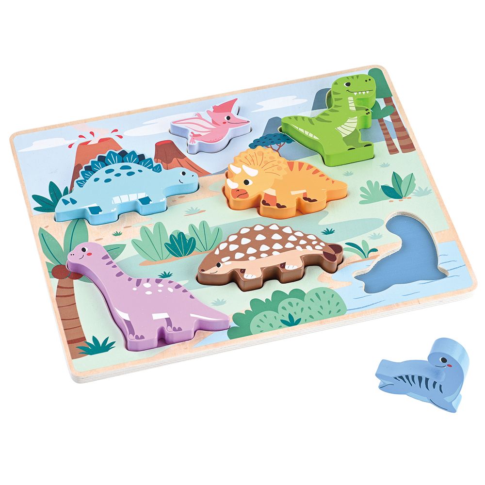 Дървен пъзел с фигури на динозаври