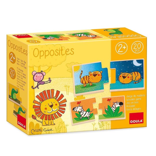Това е интересен пъзел с противоположности, в който детето ви ще трябва да постави правилните животни и противоположности и да научи различните характеристики на тези 10 дървени плочки, като: далеч-близо, над-под, сухо-мокро, отпред-отзад, мръсно-чисто и много други.