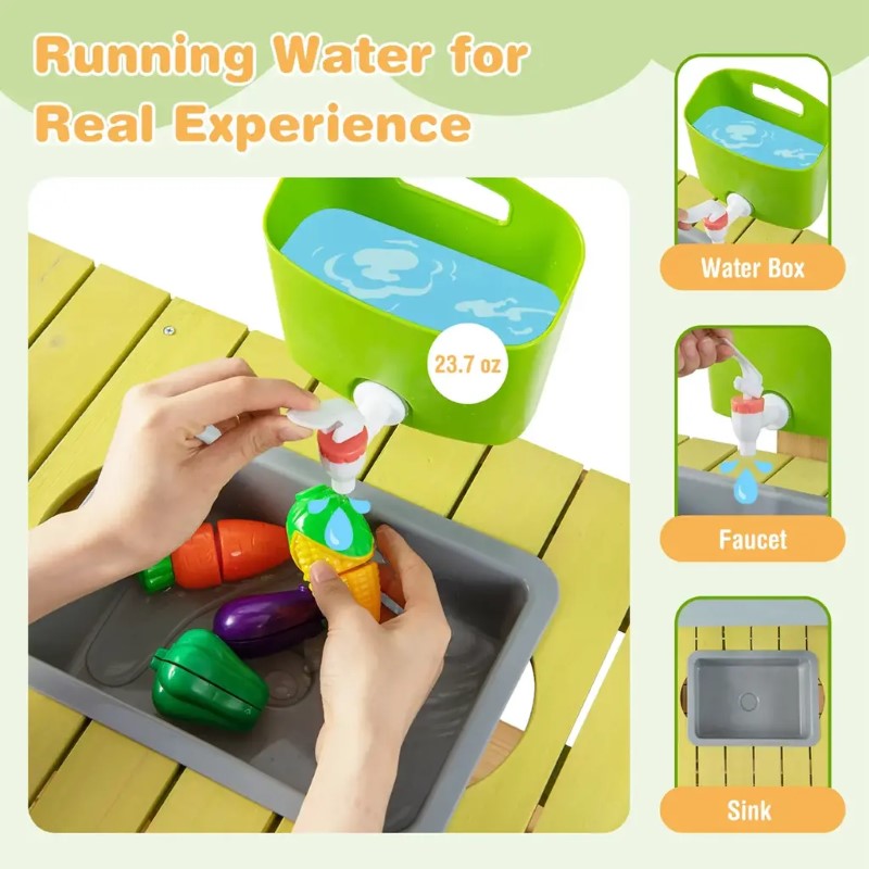 Този страхотен кухненски комплект за игра на открито е специално проектиран за деца над 3 години. Цветната визия ще привлече вниманието на децата.