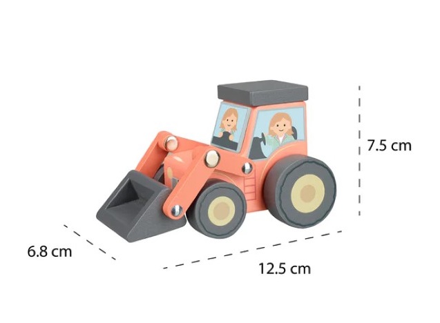 Детски дървен багер с подвижна лопата, идеален за многобройни игри от малките деца.