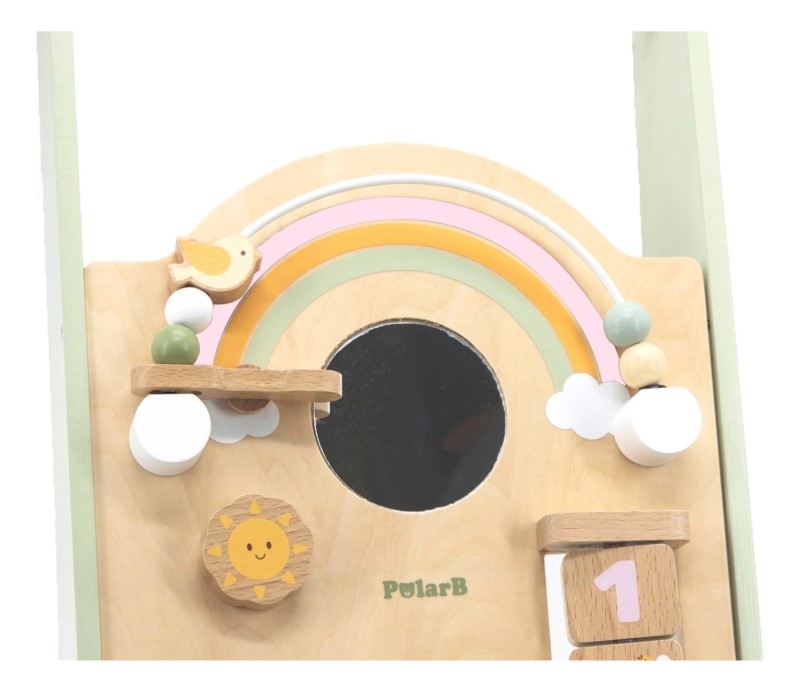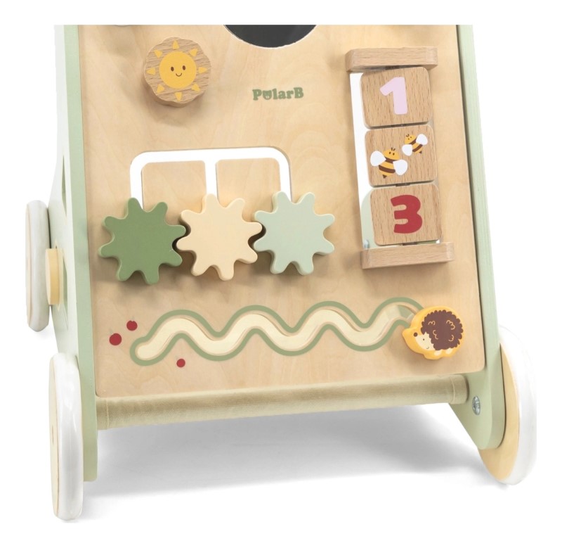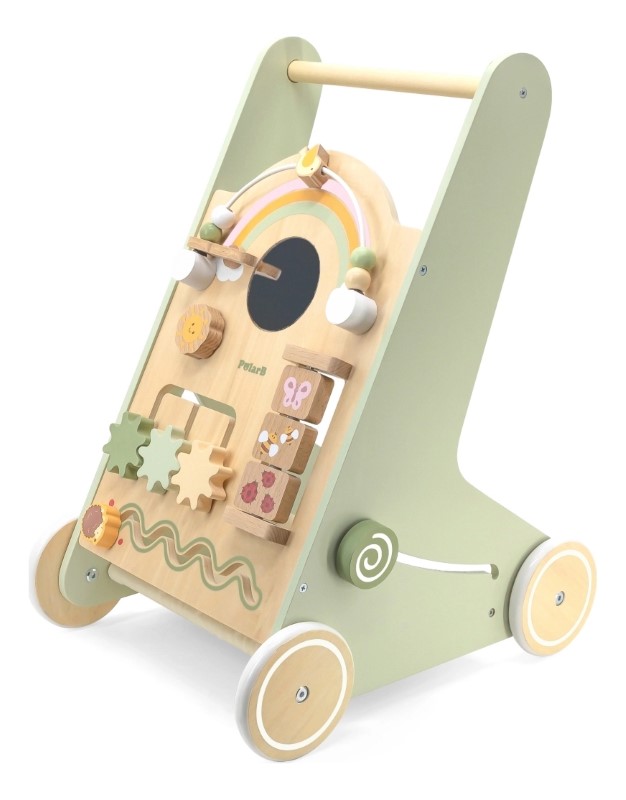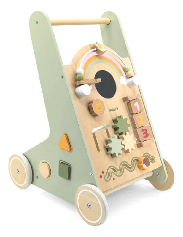 Дървена количка Уокър с активности от серията Polar B на Viga Toys, подходяща за игри и занимания както за момичета, така и за момчета.