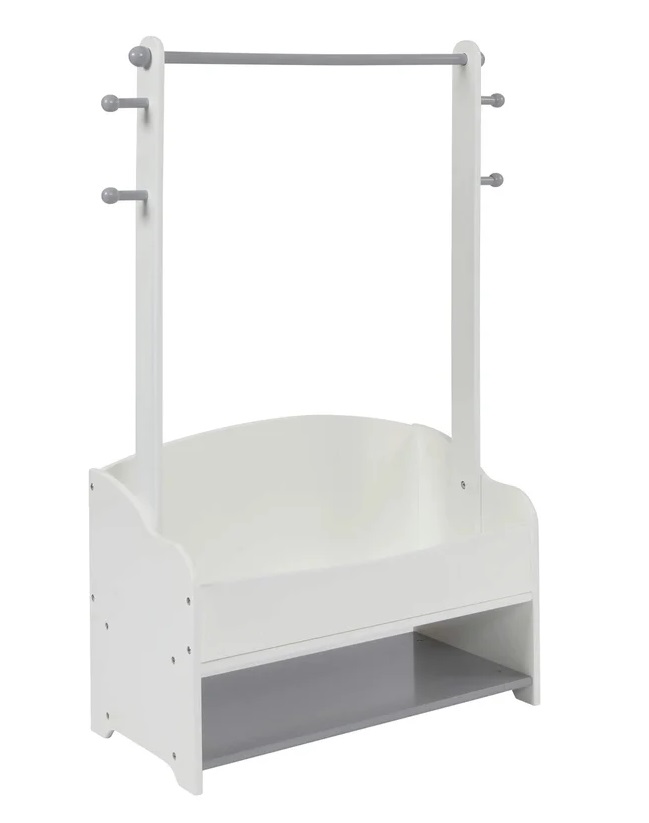Има и 2 отделения за съхранение, в която прилежно могат да се подредят раница, играчки, пантофи и обувки. Белият и дизайн я правят подходяща както за момчета, така и за момичета.