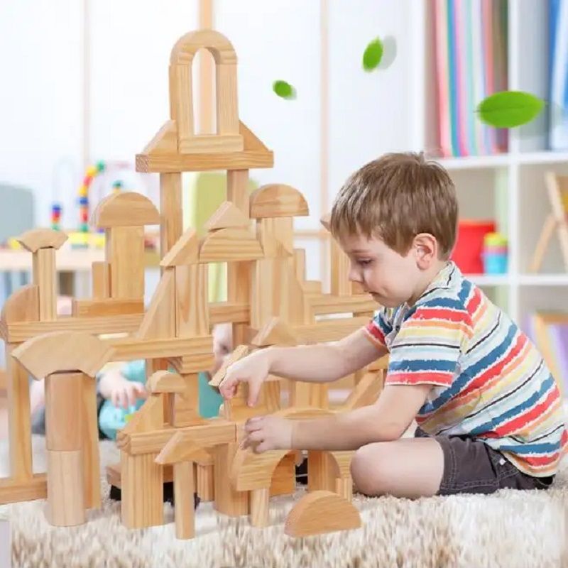 Комплект от 39 строителни дървени блокчета, с които малките деца могат да развихрят своята креативност, за да изградят големи фигури, сгради, замъци, всичко, което детето ви може да си представи!