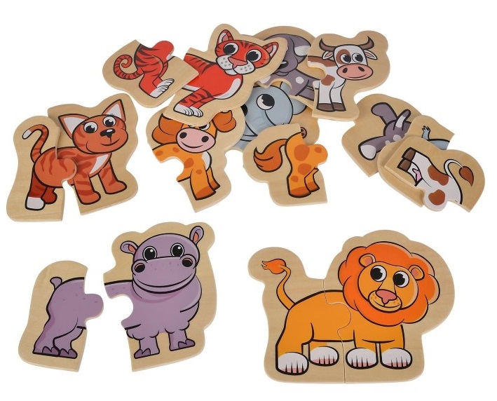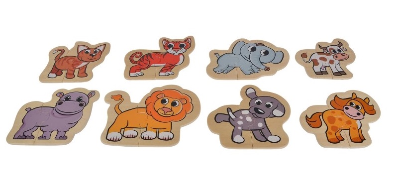 Дървени пъзели с животни, 16 части