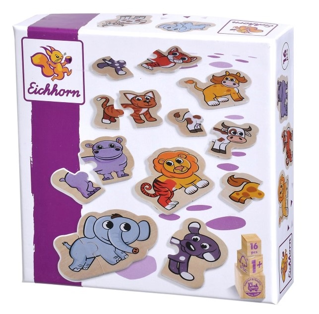 Eichhorn Дървени пъзели с животни, 16 части