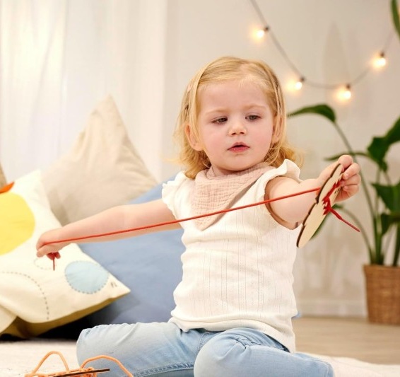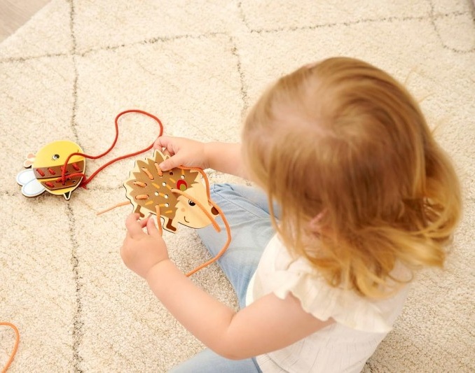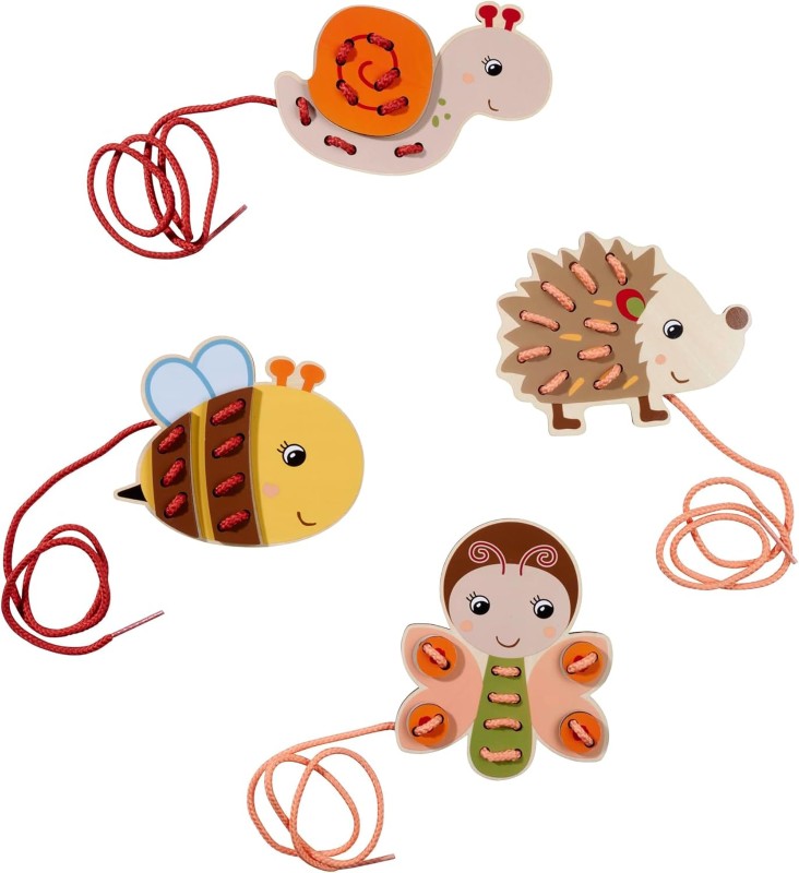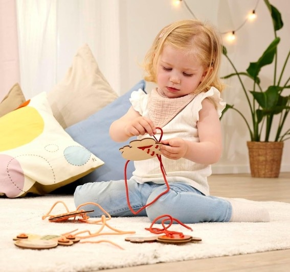 Играта за нанизване на животни насърчава фината моторика на деца над 3-годишна възраст.