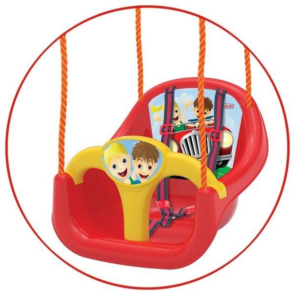 Детска пластмасова люлка предлагаща безопасност на децата при люлеене. Формата на седалката не позволява на детето само да се изкачи или да слезе от нея. Люлката е с повдигаща се предна част и предпазни колани. Люлката е придружена с дълго въже и никелирани пръстени, което позволява здраво да се закачи. Идеална е за игра на двора през топлите летни дни. Подходяща е за деца до 25 кг.