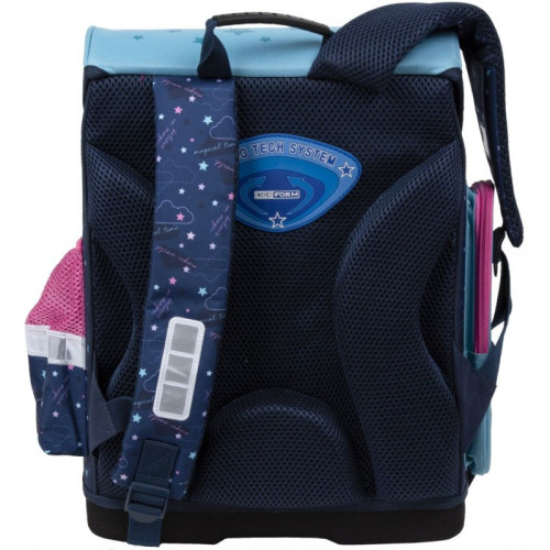 функционалност: * 1 просторно голямо отделение с капак, затварящ се с катарама, * от вътрешната страна на капака има място за разписание и учебна програма, * 1 преден джоб с цип, * 1 страничен джоб с цип, * 1 мрежест страничен джоб