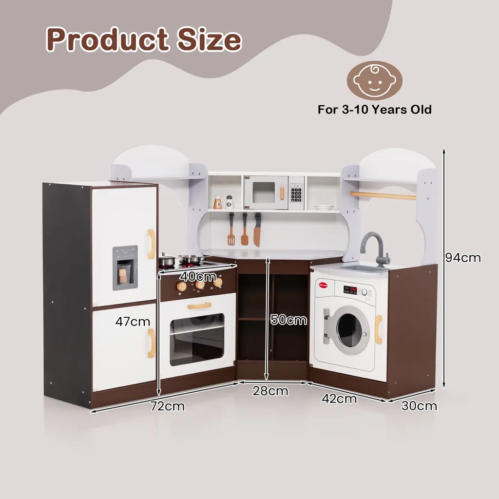 Детска дървена кухня със звуци и светлини, кафява, Costway